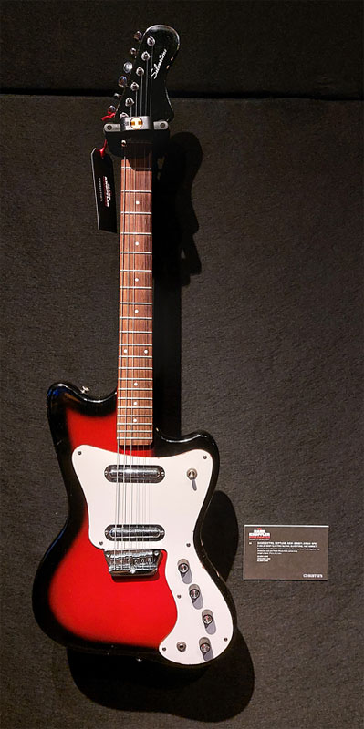 This is the Silvertone 1452 model. In an interview, Mark said: "I got into these guitars in a big way through knowing Mike Henderson. The last time I played with him in a Nashville club, women danced on the tables.” Mark used this in the studio for Boom, like that (Shangri-La 2004), Stand up guy (Shangri-La 2004), Don't crash the ambulance (Shangri-La 2004). On the Shangri-La tour in 2005, he used it on stage to play Boom, like that. This guitar was auctioned at Christie's in London on 31st January 2024. It was sold for 52.920 Pounds. |