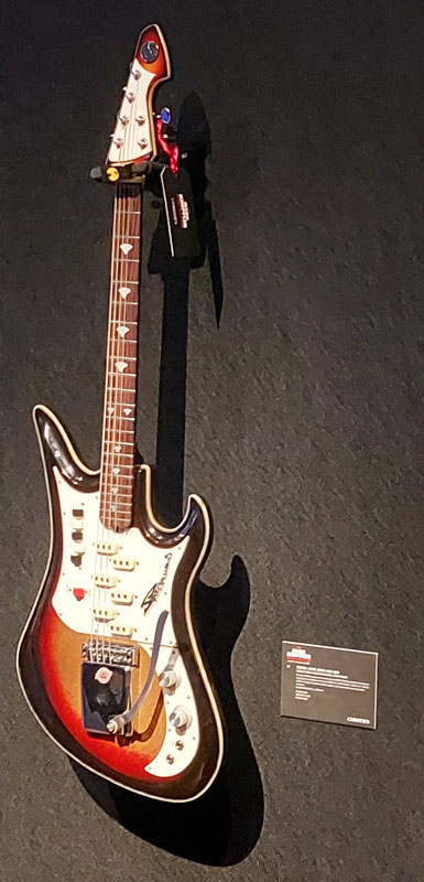 One of a handful of Teisco Spectrum 5 guitars that Mark Knopfler purchased in 2004 to try out for sound on different songs, this guitar didn’t make it onto a record at the time and was kept for occasional studio use. This guitar was auctioned at Christie's in London on 31st January 2024. It was sold for 22.680 Pounds. |