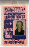| Comments | Pass for the Australian / New Zealand leg of the 1983 tour. Lighting Designer Chas Herington pictured on the pass |