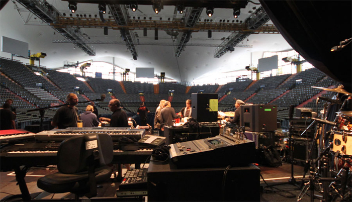 | Two pictures taken by Guy Fletcher during soundcheck and the beautiful venue by night |