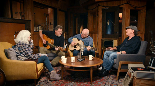 portrait of their shared musical lives. This is episode 6: Johnson & Knopfler’s Music Legends: Emmylou Harris. Brian & Mark head to Music City – Nashville – and meet up with Mark’s longtime friend and sometime collaborator, Emmylou Harris. Emmylou shares her career highlights and discusses her relationship with legendary country rock pioneer Gram Parsons. They’re also joined for an exclusive jam session with country music superstar guitarist, Vince Gill. Broadcast from Sky Arts, UK. Total playing time is about 42 minutes, great picture and sound quality. |